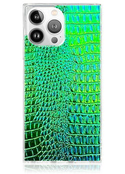 SQUARE® Green Iridescent Crocodile Faux Leather iPhone Case aus final product price: 46 dollars